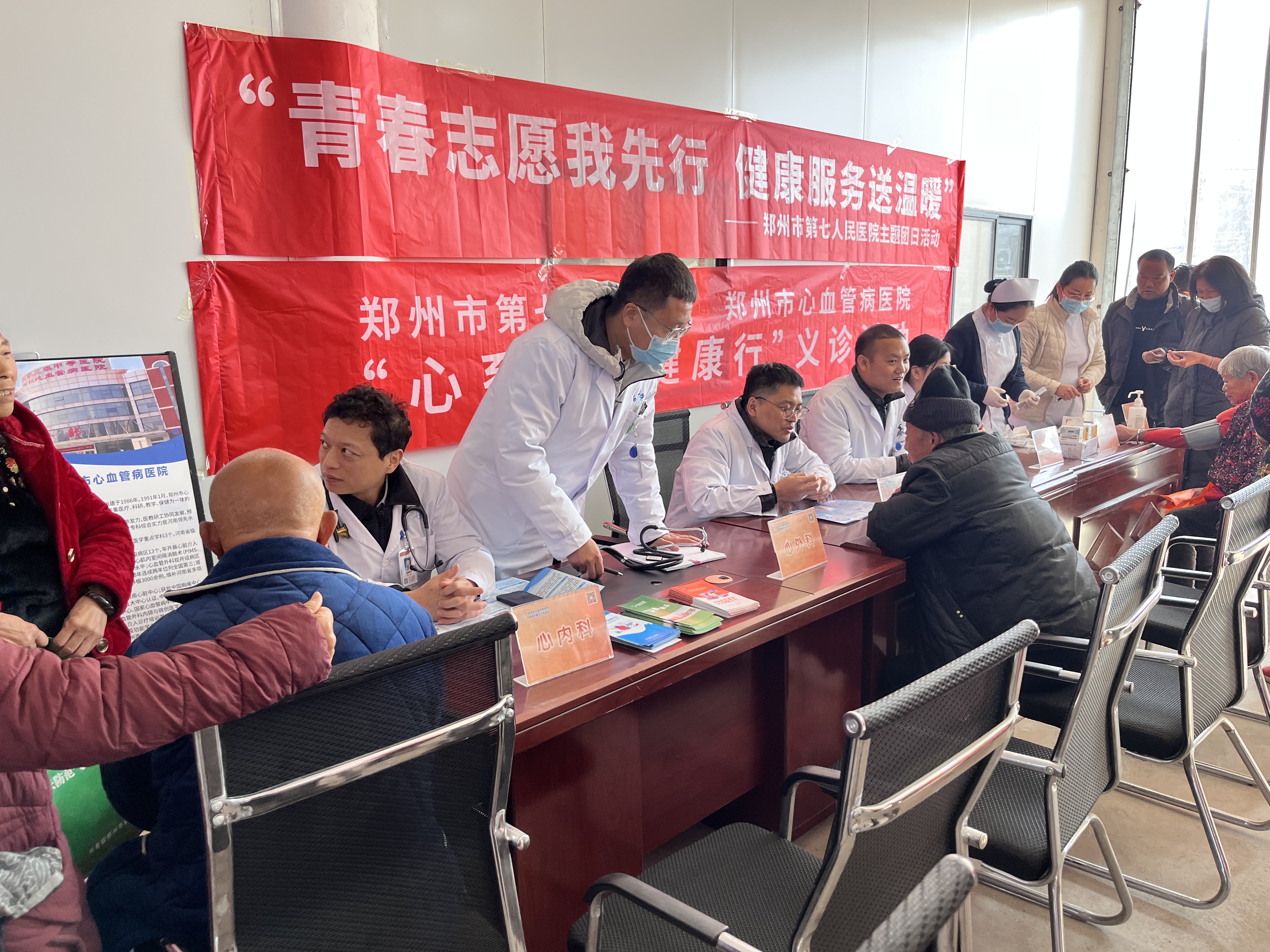 來自鄭州市第七人民醫(yī)院青年志愿服務(wù)隊(duì)的青年志愿者們忙碌而有序,他們手持聽診器、血壓計(jì)等專業(yè)設(shè)備,為前來咨詢的老年人提供基礎(chǔ)體檢,詳細(xì)詢問他們的身體狀況,并根據(jù)每個(gè)人檢查結(jié)果給出專業(yè)的健康建議,同時(shí)結(jié)合季節(jié)特點(diǎn),為老人們進(jìn)行冬季高發(fā)病心腦血管疾病的預(yù)防知識科普。